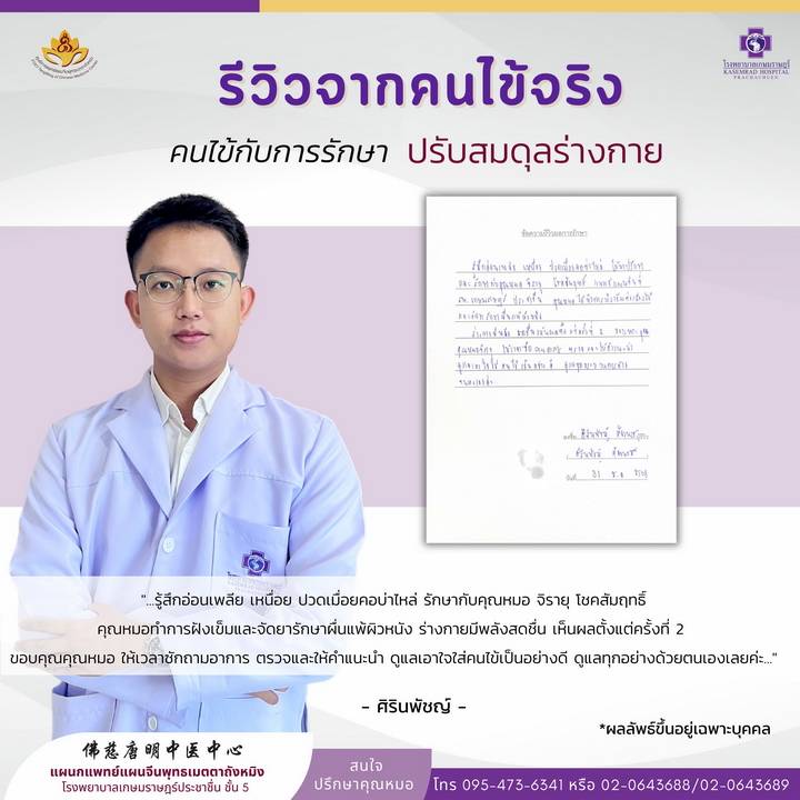 "...มาฝั่งเข็มรักษาออฟฟิตซินโดม คุณหมอมือเบา ให้คำแนะนำดี อาการปวดหลัง บ่าไหล่ดีขึ้นเยอะมากๆ...