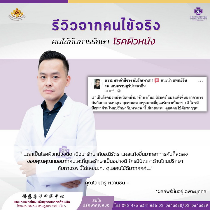 "...เราเป็นโรคผิวหนังชนิดหนึ่งมารักษากับอ.นิรัดร์ แผลแห้งขึ้นมากอาการคันก็ลดลง...