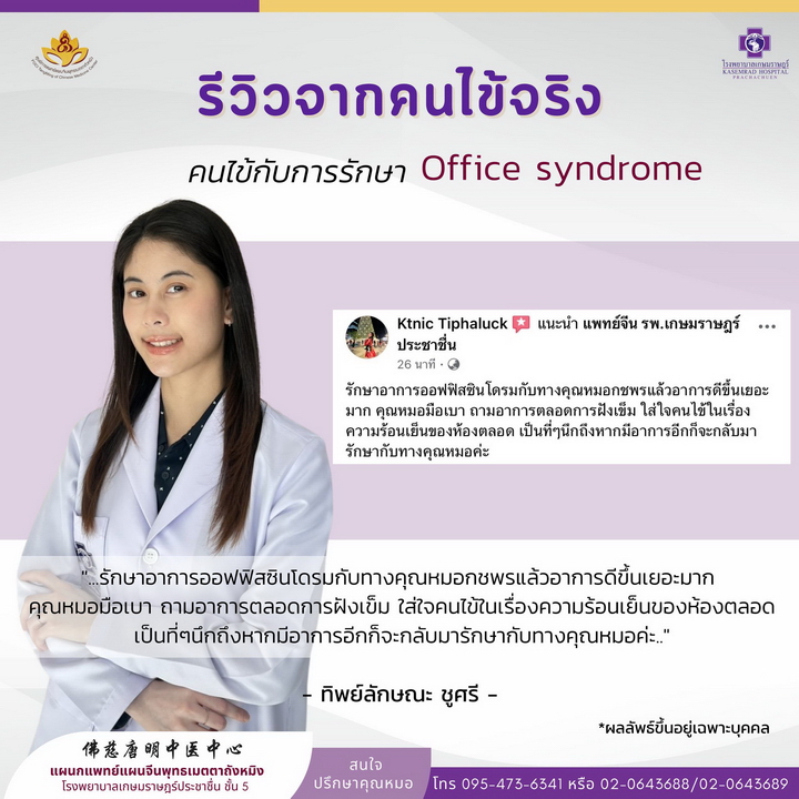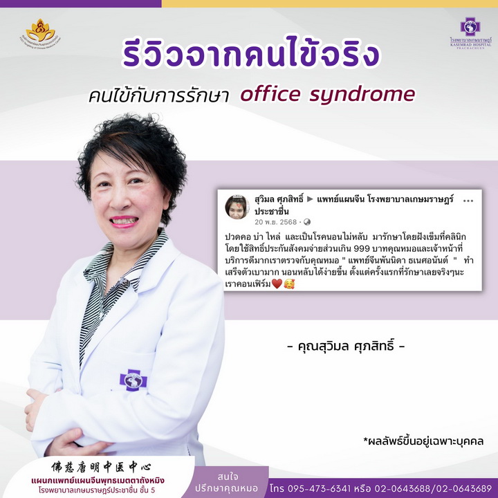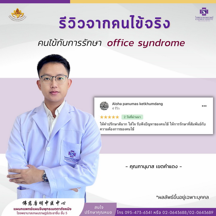 "...รักษาอาการออฟฟิสซินโดรมกับทางคุณหมอกชพรแล้วอาการดีขึ้นเยอะมาก คุณหมอมือเบา...