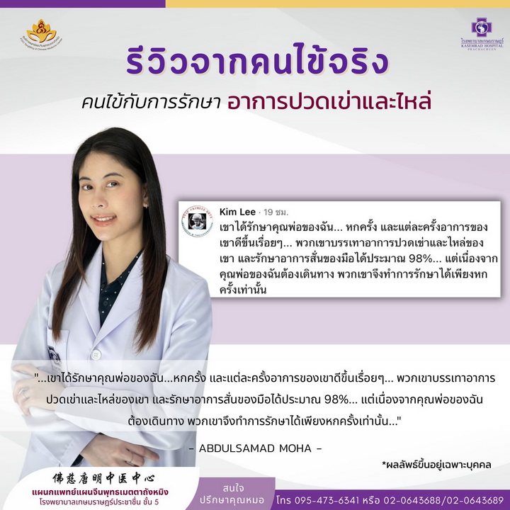 "...มาฝั่งเข็มรักษาออฟฟิตซินโดม คุณหมอมือเบา ให้คำแนะนำดี อาการปวดหลัง บ่าไหล่ดีขึ้นเยอะมากๆ...