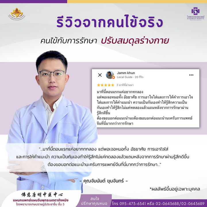 "มาฝังเข็มกระตุ้นไฟฟ้า ครอบแก้ว แล้วมีอาการดีขึ้นเป็นลำดับ คุณหมอใส่ใจให้คำแนะนำดี...