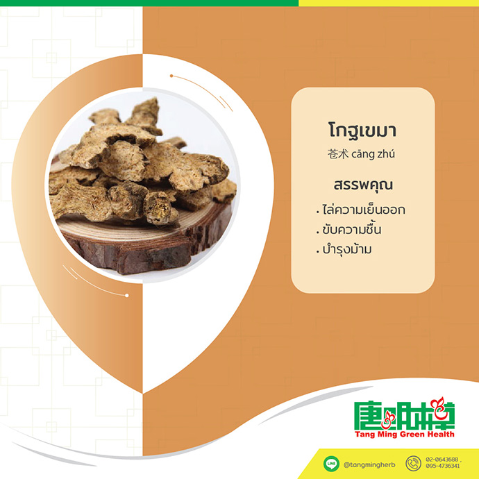 สรรพคุณ : ชับความชื้น ไล่ความเย็นออก บำรุงม้าม
