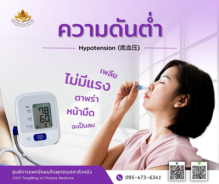 ความดันโลหิตต่ำ หมายถึง ภาวะที่มีความดันโลหิตต่ำกว่า 90/60 mmHg อย่างต่อเนื่องเป็นเวลานาน (ผู้สูงอายุความดันโลหิตต่ำกว่า 100/70 mmHg)